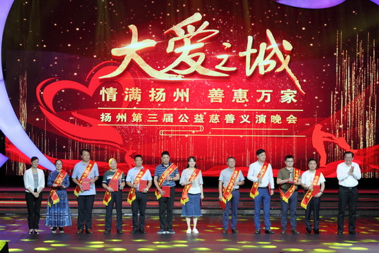 9月5日是我國第二個中華慈善日;。當晚,大愛之城;揚州第三屆公益慈善義演晚會在市會議中心舉行。中華慈善總會會長助理陳硯秋,省慈善總會會長蔣宏坤,市領導張愛軍、朱民陽、張寶娟等出席晚會?! ⊥頃项C發(fā)了首屆揚州慈善獎;,設有最具愛心慈善捐贈組織獎、最具感召力慈善工作者獎、最具愛心慈善捐贈個人獎、最具愛心慈善行為楷模獎、最具影響力慈善項目...