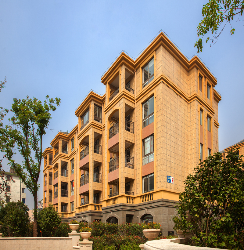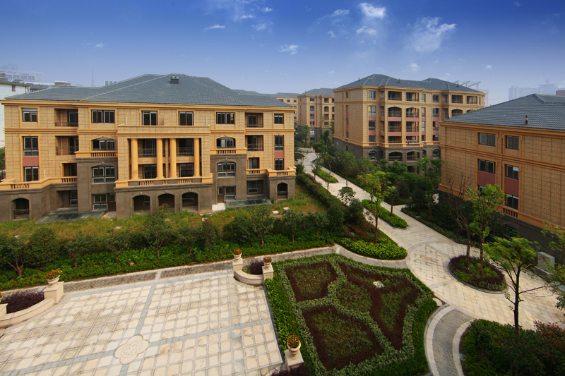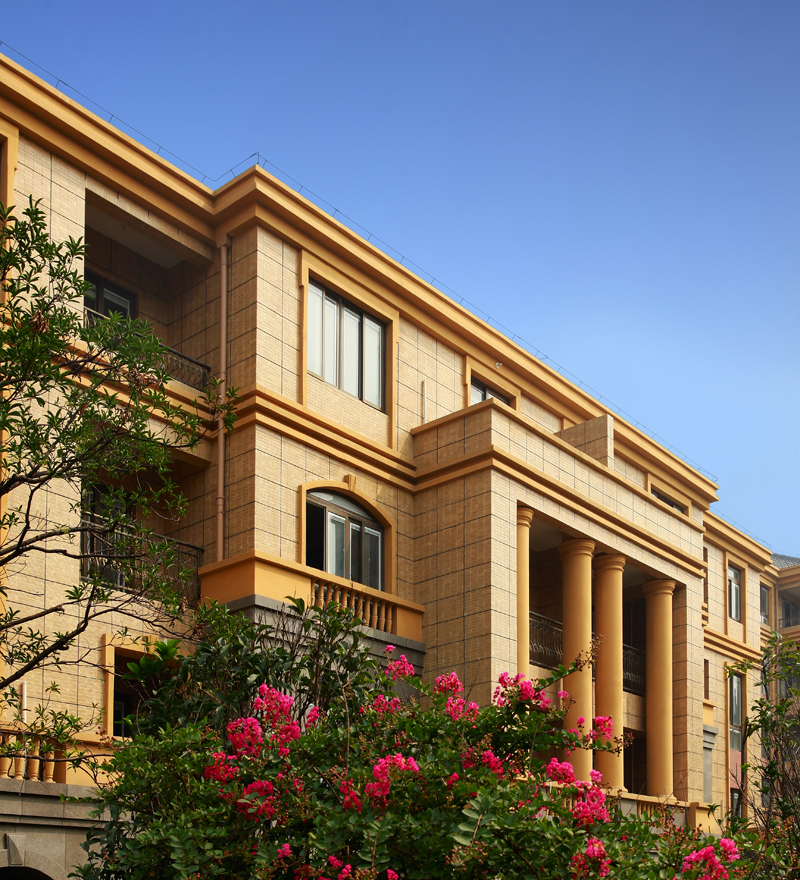 攬?jiān)潞劳フ麄€(gè)建筑文化全面融入法式建筑元素,軸線對(duì)稱的外立面,端正嚴(yán)謹(jǐn)、不事張揚(yáng)的建筑風(fēng)格,粗柱廊、厚山花、高臺(tái)階等建筑細(xì)節(jié)裝飾,形成了尊貴、氣度雍容的建筑語言。 小區(qū)以軸線交點(diǎn)的中心廣場(chǎng)統(tǒng)領(lǐng)全局,通過對(duì)古典元素的運(yùn)用,如花缽、水景、樹陣的引導(dǎo),身在其中有強(qiáng)烈的序列感,深切的表達(dá)了園林南秀北雄的園林藝術(shù)風(fēng)格。