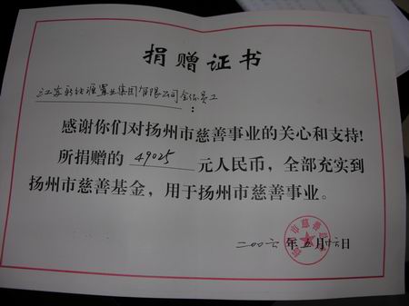 市慈善總會(huì)授予新能源董事長、總經(jīng)理包廣林先生揚(yáng)州市慈善總會(huì)副會(huì)長;稱號(hào)
