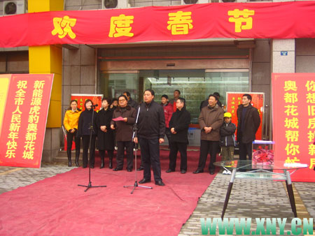 正月初二上午9:30,奧都花城置換業(yè)務(wù)開辦儀式在售樓中心隆重舉行,集團公司領(lǐng)導(dǎo)參加并發(fā)表講話。