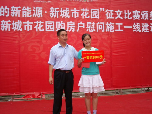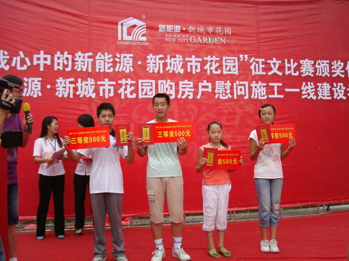 8月20日上午,在新能源新城市花園氣勢磅礴風景如畫的主入口廣場舉行了首屆我心中的新能源新城市花園;征文比賽頒獎儀式暨購房戶慰問施工一線建設者活動,數(shù)百名征文參賽者參與活動,他們在取得不同收獲,分享歡樂的同時,對新能源新城市花園多了一份感情,加深了美好的印象。