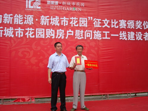 本次有獎征文活動,吸引了全市社會各界的廣泛參與,一批又一批的學生、市民來到了新城市花園參觀,共收到來稿1000多篇。人們用飽蘸深情的筆墨,謳歌了新能源新城市花園的高品質生態(tài)花園生活,儀式上業(yè)主們對為他們建造美好家園的施工一線建設者進行了慰問。