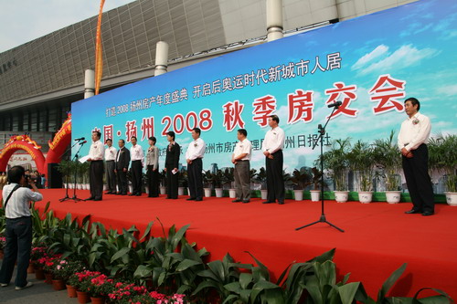 2008年10月18日上午9:18,備受矚目的中國揚(yáng)州秋季房展會;在揚(yáng)州國際會展中心盛大揭幕。與往年不同的是本屆房交會首次由揚(yáng)州市政府直接主辦、市房產(chǎn)管理局、揚(yáng)州日報(bào)社聯(lián)合承辦。市長王燕文,市委常委、常務(wù)副市長張京霞等出席了開幕式。
