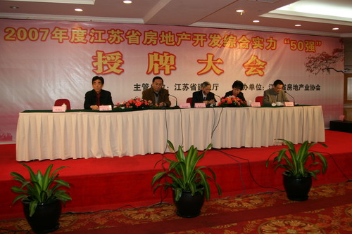 由江蘇省建設(shè)廳、江蘇省房地產(chǎn)業(yè)協(xié)會聯(lián)合主辦的江蘇省2007年度房地產(chǎn)開發(fā)綜合實力50強(qiáng);企業(yè)的評選活動。本著公開、公正、公平的原則,對照50強(qiáng);企業(yè)的評選標(biāo)準(zhǔn),專家組經(jīng)過嚴(yán)格考評,于二〇〇八年十一月二十七日,在南京市華美達(dá)怡華假日酒店舉行了授牌儀式。江蘇新能源置業(yè)集團(tuán)有限公司再次蟬聯(lián)江蘇省房地產(chǎn)開發(fā)綜合實力50強(qiáng);稱號。這是江蘇新能源置業(yè)集團(tuán)第五次獲此殊榮。