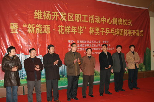12月20日上午,剛剛落成的維揚(yáng)開發(fā)區(qū)職工活動(dòng)中心舉行了隆重的揭牌儀式和新能源花樣年華;杯男子乒乓球團(tuán)體賽開幕式。