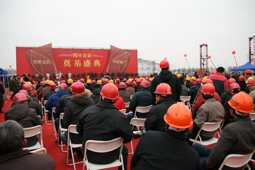 一段時間以來,受到全國房地產市場動蕩的影響,揚州開發(fā)商也有觀望現象,市區(qū)已近半年不聞房地產項目開工聲。陽光美第;昨日開工,屬于逆市而為;、 逆市而上;,因此有許多開發(fā)商同行到場助陣。