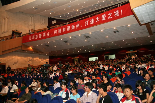5月19日,揚州這座大愛之城處處涌動著愛心和溫暖。在時代廣場南大門揚州519慈善一日捐捐贈儀式;主會場,上百家單位踴躍捐款。