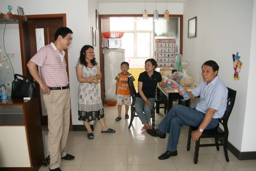 2009年6月21日上午,新能源集團(tuán)公司董事長(zhǎng)包廣林和新能源虎豹公司總裁顧載兵及相關(guān)老總,冒著酷暑,分別到獲得本次誠(chéng)實(shí)做人、誠(chéng)信做事;優(yōu)秀員工的4名干部家中進(jìn)行慰問。董事長(zhǎng)包廣林對(duì)他們的家人說(shuō):他們?cè)谛履茉慈〉玫某煽?jī),首先要感謝你們作為大后方的家庭給予的支持和理解。新能源之所以能有今天的成績(jī),就是因?yàn)橛形覀冞@樣的優(yōu)秀的干部員工,新能源的未來(lái)會(huì)更加美好。