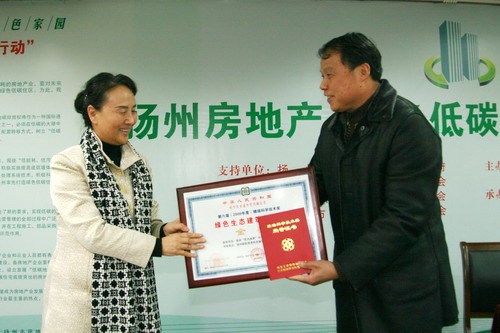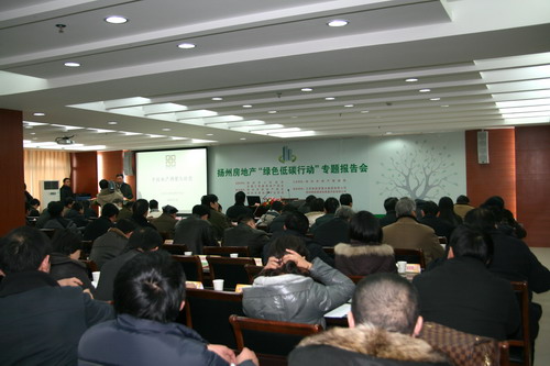 由揚(yáng)州市人民政府、全國(guó)工商聯(lián)房地產(chǎn)商會(huì)、市房管局、市地產(chǎn)商會(huì)、市房地產(chǎn)行業(yè)協(xié)會(huì)、新能源置業(yè)集團(tuán)聯(lián)合發(fā)起的揚(yáng)州房地產(chǎn)業(yè)綠色低碳行動(dòng); 2009年12月28日下午在在揚(yáng)州公元國(guó)際大廈正式拉開帷幕。會(huì)長(zhǎng)江蘇新能源置業(yè)集團(tuán)董事長(zhǎng)包廣林剛宣讀完《揚(yáng)州房地產(chǎn)業(yè)綠色低碳行動(dòng)倡議書》就得到了在場(chǎng)所有房地產(chǎn)開發(fā)企業(yè)的積極響應(yīng),紛紛在綠色低碳樹;上簽下了自己的姓名。全國(guó)工商聯(lián)房地產(chǎn)商會(huì)會(huì)長(zhǎng)聶梅生、江蘇省工商聯(lián)房地產(chǎn)商會(huì)副會(huì)長(zhǎng)肖梅、市人大常委會(huì)副主任孫永如等見證了這一行動(dòng)的開始。
