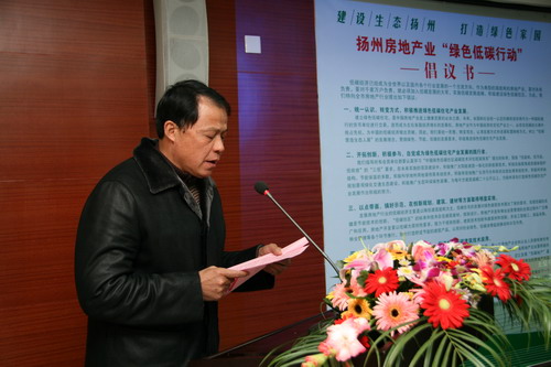 董事長(zhǎng)包廣林宣讀《揚(yáng)州房地產(chǎn)業(yè)綠色低碳行動(dòng)倡議書》