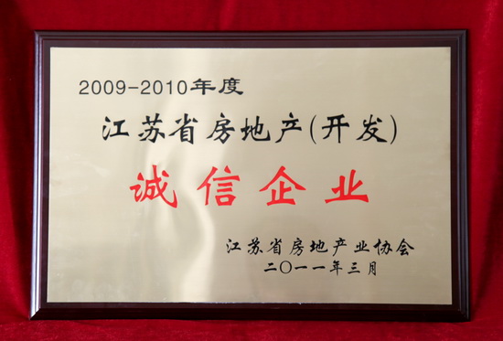 2011年4月19日,由江蘇省房地產(chǎn)協(xié)會(huì)牽頭組織的2009-2010年度江蘇省房地產(chǎn)開(kāi)發(fā)誠(chéng)信企業(yè)表彰大會(huì)在南京舉行。江蘇新能源置業(yè)集團(tuán)有限公司獲得江蘇省房地產(chǎn)(開(kāi)發(fā))誠(chéng)信企業(yè);稱號(hào)。