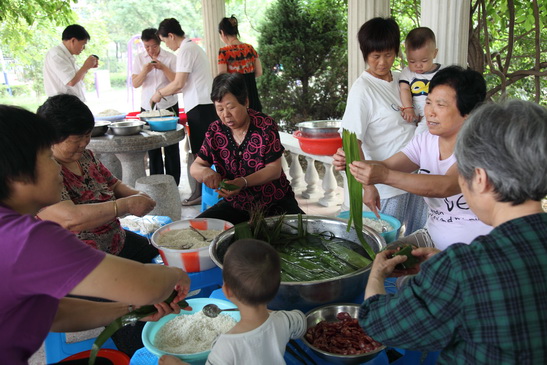活動(dòng)過(guò)程中,我們的笑語(yǔ)聲吸引了越來(lái)越多的人加入,老人、年輕人、小朋友現(xiàn)場(chǎng)人聲鼎沸、其樂(lè)融融,共同繪出一副和諧美妙的畫(huà)卷。大家齊心合力,各顯神通,在短短一個(gè)半小時(shí)內(nèi),就包了500多個(gè)粽子,用鴨蛋簍裝好了200多個(gè)鴨蛋,作為年輕一代的我們,也興致勃勃地參與其中,現(xiàn)場(chǎng)拜師學(xué)藝,親身體驗(yàn)了一把勞動(dòng)的快樂(lè)和民俗的魅力。業(yè)主們紛紛表示,這樣的活動(dòng)讓大家的心靠的更緊、情誼更加深厚,真正體現(xiàn)了物業(yè)業(yè)主一家親;。來(lái)自得月苑業(yè)委會(huì)的李阿姨說(shuō),業(yè)主們今天個(gè)個(gè)喜氣洋洋,謝謝新能源組織這么好的活動(dòng),讓我們業(yè)主參與進(jìn)來(lái),一起包粽子、編鴨蛋簍子,既凝聚了民心,又可以獻(xiàn)出自己的愛(ài)心,給其他的困難業(yè)主送去溫暖。