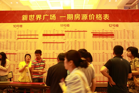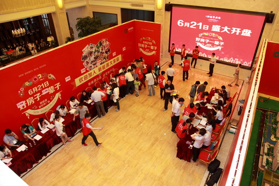 6月21日是新能源新世界廣場首期8幢小高層開盤的日子,一大早,泰興市民就從四面趕來,將臨時搭建的擁有2000個座位的搖號大棚坐得滿滿,市民憑搖出的號碼進入銷售大廳選房購房。據(jù)統(tǒng)計,開盤3小時就勁銷300余套。