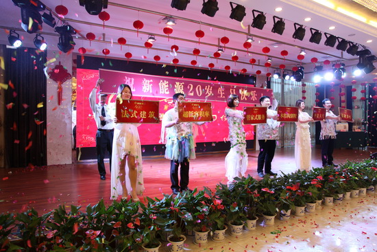 在慶典晚會(huì)上,各部門表演了精彩的文藝節(jié)目。集團(tuán)公司領(lǐng)導(dǎo)為輝煌20年 我心中的新能源;征文獲獎(jiǎng)?wù)哳C獎(jiǎng)。晚會(huì)現(xiàn)場還穿插了抽獎(jiǎng)活動(dòng)。晚會(huì)結(jié)束時(shí),豪第坊大型噴火噴泉秀,讓與會(huì)人員流連忘返,把氣氛推向高潮。