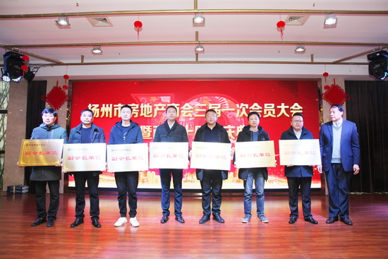 1月3日,揚州市房地產(chǎn)商會三屆一次會員大會暨商會成立十周年慶典在豪第坊.揚州院子舉行,揚州市人大常委會副主任楊正福、揚州市政協(xié)副主席董玉海及揚州市和儀征市的相關領導,省、市工商聯(lián)負責人,揚州市房地產(chǎn)商會的會員單位代表濟濟一堂,進行換屆選舉,為商會的發(fā)展掀開了新的一頁。