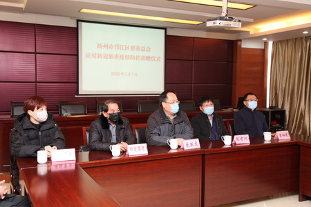 眾志成城抗疫情,同舟共濟渡難關(guān)。;2月7日上午,邗江區(qū)慈善總會的會議室洋溢著濃濃的暖流,來自邗江區(qū)的部分企業(yè)為抗擊疫情的捐贈儀式在這里舉行。