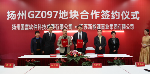 3月15日上午,江蘇新能源置業(yè)集團(tuán)有限公司與揚州國富軟件科技發(fā)展有限公司舉行GZ097項目簽約儀式,新能源置業(yè)集團(tuán)董事長包廣林、總裁王秋云,國富科技董事長趙方勇、總監(jiān)陳龍等出席。