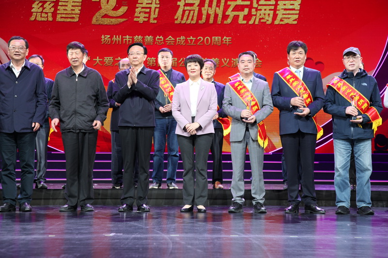揚(yáng)州市慈善總會(huì)成立20周年暨“大愛之城”第四屆公益慈善義演晚會(huì)于5月19日在揚(yáng)州運(yùn)河大劇院隆重舉行,董事長包廣林參加晚會(huì)。會(huì)上,第二屆“揚(yáng)州慈善獎(jiǎng)”評(píng)選結(jié)果出爐,江蘇新能源置業(yè)集團(tuán)有限公司榮獲“最具愛心慈善捐贈(zèng)單位”稱號(hào),總裁王秋云登臺(tái),從市領(lǐng)導(dǎo)手中接過獎(jiǎng)杯和榮譽(yù)證書。同時(shí),“新能源”還在晚會(huì)現(xiàn)場(chǎng)向揚(yáng)州市慈善總會(huì)捐款100萬元。