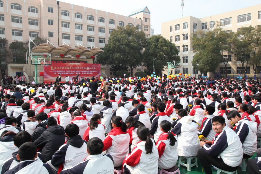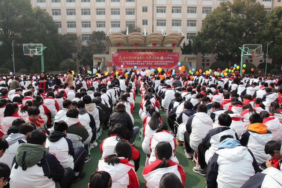 10時(shí)整,邗江區(qū)實(shí)驗(yàn)學(xué)校九年級學(xué)生齊聚該校青春廣場。頒獎(jiǎng)典禮在《我相信》《相信自己》《怒放的生命》樂曲中拉開序幕,校領(lǐng)導(dǎo)宣讀表彰決定,王秋云為優(yōu)秀學(xué)生代表和優(yōu)秀教師代表頒發(fā)獎(jiǎng)學(xué)金、獎(jiǎng)教金。接著,校長寄語,家長祝福,“以青春之名,赴夢想之約”。在氣勢如虹的擂鼓聲中,同學(xué)們宣誓:“ 三年磨礪,意志堅(jiān)定。百日競渡,壯志凌云。 唯學(xué)是先,沖鋒在前。拼搏實(shí)干,智慧點(diǎn)燃。懸梁刺股,同心并肩。科學(xué)作息,苦練百天。決勝中考,笑迎凱旋。為我邗實(shí),再續(xù)佳篇。”