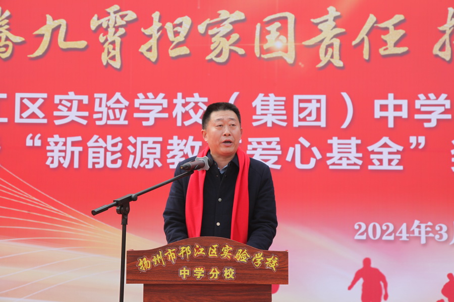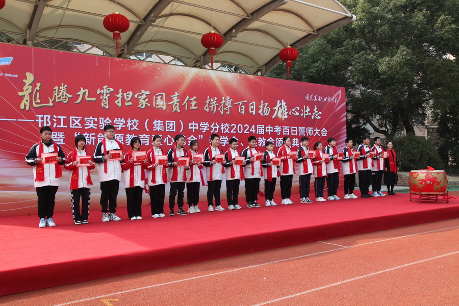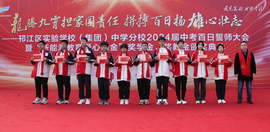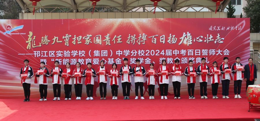 “龍騰九霄擔(dān)家國責(zé)任,拼搏百日揚(yáng)雄心壯志?!?/span>3月8日上午,邗江區(qū)實(shí)驗(yàn)學(xué)校(集團(tuán))中學(xué)分校舉行2024屆中考百日誓師大會(huì)暨“新能源教育愛心基金”獎(jiǎng)學(xué)金、獎(jiǎng)教金頒獎(jiǎng)典禮,江蘇新能源置業(yè)集團(tuán)總裁王秋云、邗江區(qū)教育局副局長、邗江區(qū)實(shí)驗(yàn)學(xué)校校長葛光出席活動(dòng)。